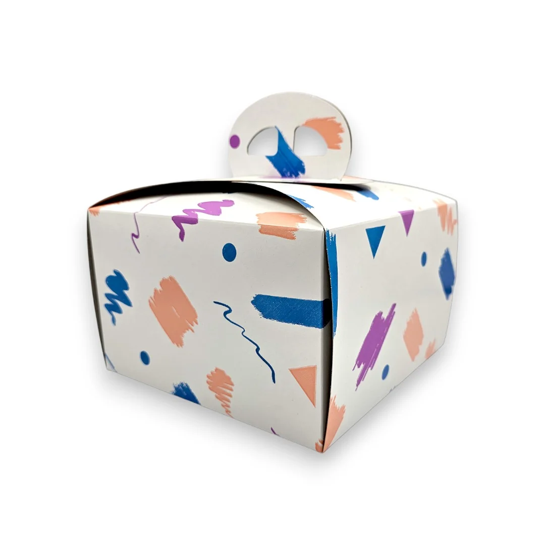 - Protecție și Păstrare a Prospețimii: Cutiile multicolor cu mâner oferă o protecție excelentă împotriva contaminanților, menținând torturile proaspete și prezentabile până la momentul servirii. Cartonul rezistent previne deformarea torturilor și asigură integritatea produsului.